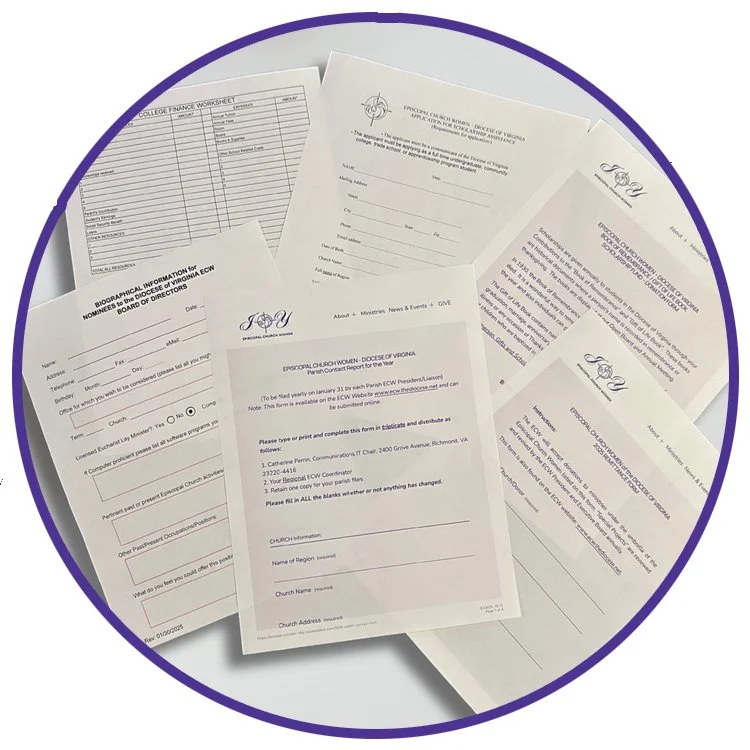 Explore our ECW Resources and Forms, including scholarship applications, parish quick reference guides, and more helpful links to support your ministry and mission. For assistance with ECW links and forms, the Vice President, Administration chair is Jodie Pully.